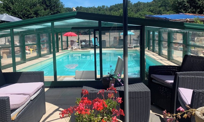 Quiet house of happiness with swimming pools is located in Aubin. Quiet house of happiness with swimming pools provides accommodation, featuring Pool, TV, Balcony/Terrace, among other amenities. This House features Pool, TV, Balcony/Terrace, to make your stay a comfortable one.