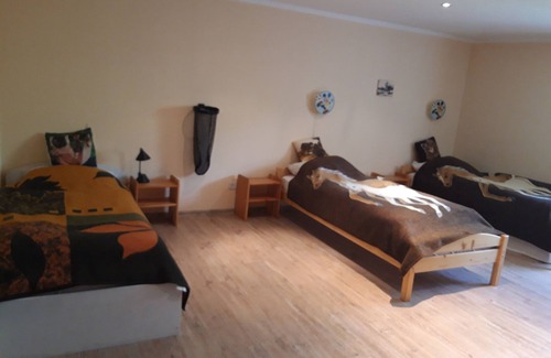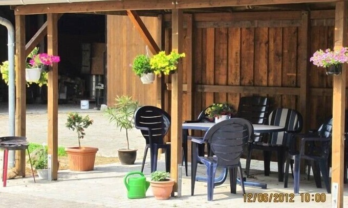 The Apartment II is 80 square meters, has a living room, two bedrooms, kitchen, bathroom and terrace. It has room for max. 6 persons. In the yard there is a large sand pile for the kids with Bobbycar, sand toys, scooters. In the hall can also be played in bad weather (swing, darts, table football, table tennis). Since the farm is in a cul de sac, it is very quiet here. On the neighboring pastures run in the summer horses and cattle. Upon request, rolls and breakfast service is offered.