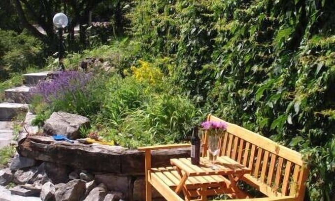 It is absolutely peaceful here, you only hear the nature! From the parking spot below on the slope, you have to go up 66 steps)