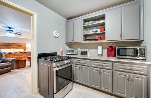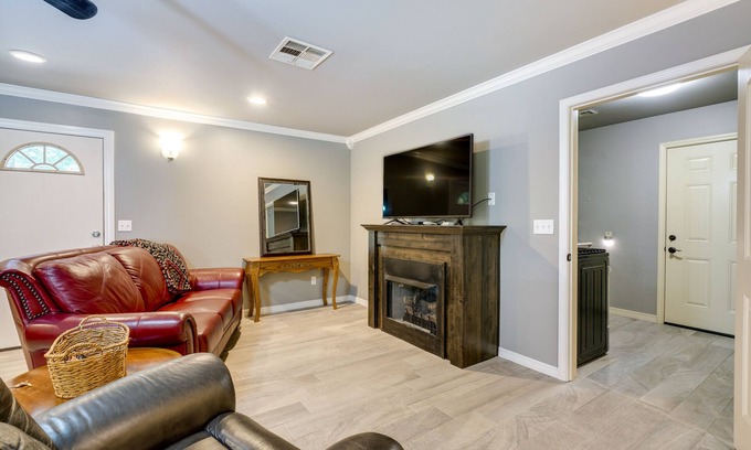 Experience a small town and big adventure with a stay at this 1-bath studio vacation rental in Ada, OK! Located just 3 miles from the heart of Main Street, this apartment is the perfect base for exploring Ada’s lively coffee shops and eateries or catching some live music at Wintersmith Park. Whether you stay close to home or take a day trip to Lake of the Arbuckles, you'll love returning to this rural retreat to grab dinner in the full kitchen and curl up by the fireplace with a book.