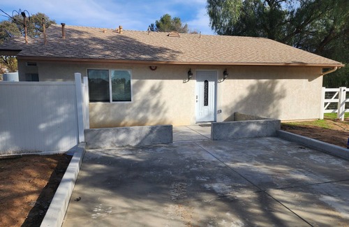 Your cozy getaway awaits in Ramona at this lovely guesthouse with its own private driveway and a secluded private backyard under a shady peppercorn tree. This soothing retreat features a private bedroom with a queen bed, a fully stocked bathroom with a standing shower, and an family room with a sleeper couch that hides a comfortable queen bed. You'll find a full kitchen, AC and heating, ceiling fans in every room, a washing machine, WiFi, , and much more to make your stay comfortable. We hope you enjoy what our place and our little slice of San Diego country, Ramona has to offer.