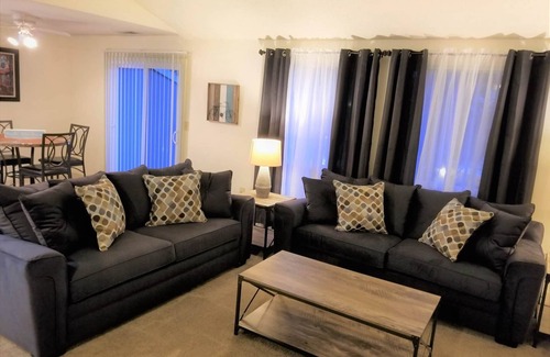 Hosted by, Tri City Furnished Homes LLC, in Kennewick! We offer corporate rates, monthly discounts and month to month lease options. Contact us directly for homes available. **This stylish condo offers open concept living with a accomodating kitchen & 870sqft on 1 level. Private fenced backyard w/ BBQ & patio furniture, & new TVs! Kitchen is fully stocked with every appliance you will need! ALL of our locations provide new bedding, linens and pillows, Garage parking, & high speed Wi-Fi.