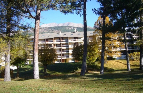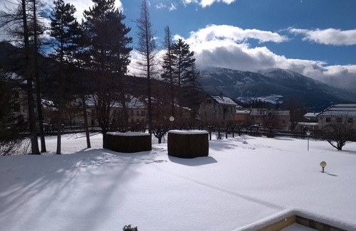 En plein coeur de Barcelonnette dans une résidence très calme avec un très beau parc arboré, un T2 de 45 m2 classé 2* orienté sud avec une très belle vue sur les sommets du Chapeau de Gendarme et du Pain de Sucre, équipé pour 4 personnes, composé de