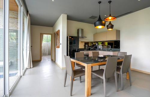 This villa is located in the Layan area only a few minutes to Layan beach by car. It's a quiet and relaxing place. The villa is not near the main road. It's around 800 meters from the main road in Layan Soi 7. A small but warm garden makes it feels like home. The open space living room and the kitchen are overlooking to swimming pool.