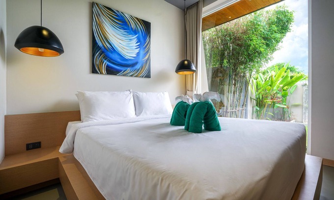 Our pool Villa is located in villa Sunpao Boutique Resort which is surrounded by greenery nature. Feature modern and tropical-style pool villa. This villa is set amidst the north coast of Phuket on Layan beach. Our place is a fully furnished villa with a huge swimming pool. Equipped with a kitchen appliance, stove, oven, refrigerator, bathtub, cable, and WiFi.