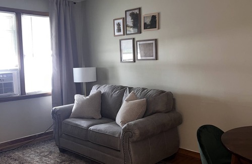 Relax in this two bedroom fully furnished apartment great for a couples weekend, solo getaway, visiting family, sporting events, ice fishing, or golf tournaments. Several restaurants, bars, parks, and lakes are all with in walking distance from your room. If you are traveling as a family, a pack n'play is available. We also provide a lot small selection of toys, books, and games for young children to enjoy during your stay.