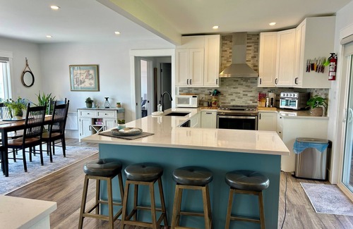 'York Point Beach House’ is a beautiful 2 bedroom cottage on the water in a quiet setting just 10 minutes west of Charlottetown in Cornwall. Just minutes from restaurants and other service amenities, the cottage sleeps four with a queen bed in the master bedroom and a double bed in the second bedroom. The dining room comfortably seats 6. The cottage is fully furnished & equipped with propane BBQ, washer & dryer, all kitchen appliances (including dishwasher & air fryer), and WiFi. A 10x16 sunroom and two large panoramic composite decks with steps to the water and a large yard provide ample space for enjoying this peaceful scenic destination. Excellent location for beach-combing or to just relax and watch the wildlife - blue herons, eagles, seals, etc. Popular north shore and south shores beaches are 20-30 minutes away. There are 2 external security cameras on site for security purposes.