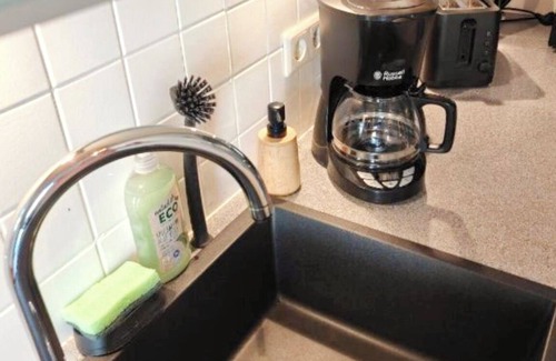 Laundry: Washing machine, drying rack, and iron — ideal for longer stays