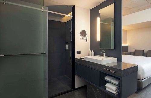 Recreational amenities at the hotel include an outdoor pool and a 24-hour fitness center.