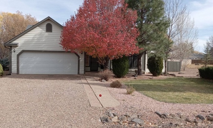Enjoy our modern, open concept 3 bdrm/ 2 bath hm in an upscale gated community in Pinetop-Lakeside with hot tub. This is a lake community with private access to Rainbow Lake(about a 5 minute walk) Kitchen has newer appliances, gas stove, granite countertops. Family room has wood floors leather furniture, 60’ flat screen, with surround sound and Samsung Blue Tooth Music Soundbar. Master bdrm has 50’ flat screen and comfy king size bed. Kids room is a full over full bunk bed with trundle. Also, 50’ flat screen in kids room. Master bath is huge with walk-in shower and heated towel bar. Garage is available to secure equipment and toys and guests have access to use of toys in the garage(kayak, canoe, bikes, etc). Spacious backyard with natural gas grill and back porch for additional relaxation.