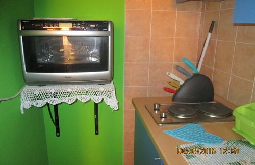 A kitchen with fridge - freezer, microwave, stove, crockery, linen (towels, sheets and blankets), wi fi, LCD TV, iron with ironing board, hairdryer, a small bookshelf, a balcony for intimate and relaxing dinners.