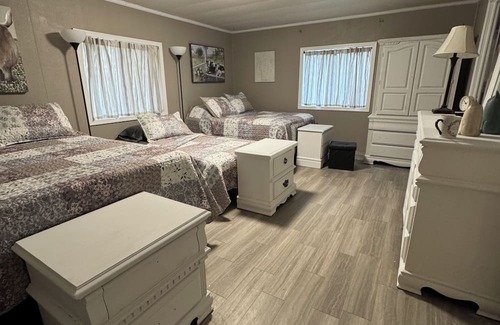 Guests are welcome to pick flowers, use our art supplies, sit in the hot tub and even schedule private classes for groups of 8. We welcome groups of crafters, bridal parties,small outdoor venues, and more. Our home is designed for crafting. We have 7 beds and room for 8 guests. The third room in the house is a well equipped craft room with an on your honor system for fabric, ribbon, and so much more. We look forward to hosting your group and hope you’ll trust us for a weekend of fun artistic design.