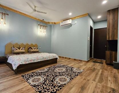 Offering a garden, Rajputana Palace with Private Pool by Homeyhuts provides accommodations in Hyderabad. This property offers a private pool, free Wifi, and free private parking. Outdoor seating is also available at the villa. Providing a terrace and pool views, the villa includes 6 bedrooms, 2 living rooms, flat-screen TV, an equipped kitchenette, and 6 bathrooms with a bidet and a shower. Towels and bed linen are provided in the villa. For added privacy, the accommodation features a private entrance. The villa has a picnic area where you can spend the day outdoors. Ramoji Film City is 19 miles from Rajputana Palace with Private Pool by Homeyhuts, while Chowmahalla Palace is 26 miles away. Hyderabad Rajiv Gandhi International Airport is 17 miles from the property.
