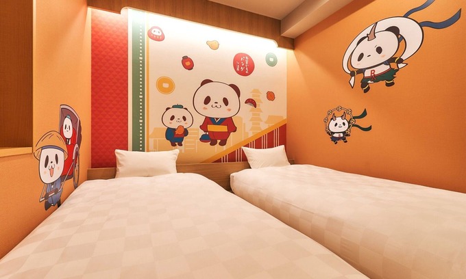 / Twin room welcomed by OKAIMONO PANDA Asakusa Fujin and Raijin pattern