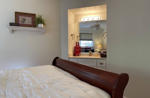 Cozy custom cottage on a hobby farm with horse facilities. Come enjoy a relaxing getaway overlooking the lush green pastures with a gorgeous view of the snow capped Sierras. Each room has its own vanity with both bathrooms being accessible through the shared hallway. A queen bed in one room and two single beds in the second provide ample comfort for up to 4 guests. Outside a comfortable patio with barbecue and patio furniture is a great place to relax. We have a 6 stall horse barn so your horses can stay in comfort.