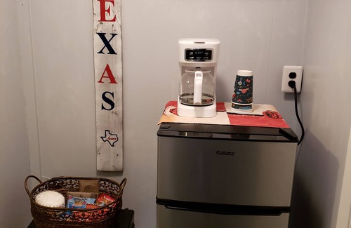 Our horse ranch and rescue is located just minutes south of Fort Worth in Burleson, Texas. You will feel right at home in our cute 1-bedroom farmhouse that features a cozy bedroom with a queen bed, a large vanity with 2 lighted mirrors and a large full length mirror perfect for getting ready for any event. If you plan on staying in, there is high speed internet/wifi and 2 Roku televisions ready for you to watch or stream your favorites.
