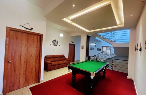 It's a 3 Bhk villa with a private swimming pool and billiards table , carrom board , chessboard for entertainment . We have a Sony soundbar too & a 65" TV