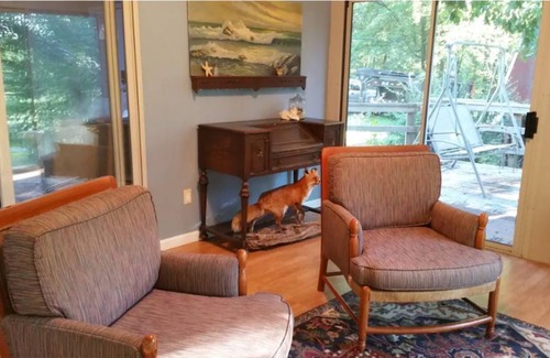 Rapidan Hill: In the heart of the Civil War Battlefields (Chancellorsville) this attached guest house (formerly a mother-in-law suite) is traditionally decorated with a few antiques blended in. The perfect spot for one person or a small family, we provide a light and airy space with amazing wilderness views overlooking the Rapidan River. This listing is located on a small hobby farm where goats, chickens, pigs, and turkeys are raised.