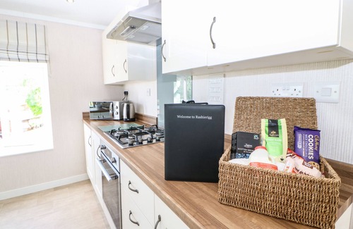 The living areas in this single-storey lodge consist of an open-plan living space with kitchen, dining area and sitting area, with an electric oven, gas hob, microwave, fridge/freezer, washing machine, dishwasher, and TV with DVD player. The bedrooms consist of a double with en-suite shower room, a twin, and a main bathroom. Outside there is a wrap-around decked terrace with furniture, a gas barbecue and hammock, along with off-road parking for one car. You'll find a shop within 1.7 miles, and a pub within 1.1 miles. Please note that pets and smoking are not permitted in this property. WiFi, fuel, power, bed linen and towels are all included in the price. Rashierigg is the perfect dwelling for a group break to the Yorkshire countryside.Please note: This site is a very quiet site with 10pm to 8am quiet timings that must be honoured.
