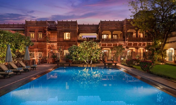 Built in 1920, this architectural marvel, Ratan Vilas, Jodhpur offers an outdoor swimming pool and a restaurant that serves Indian and continental specialties. It is within 1.2 mi from the Jodhpur Railway Station and Sadar Government Museum. Free WiFi access is available in the public areas and in the guest's rooms of the property. Each modern, elegant and air-conditioned room here will provide you with a satellite TV, seating area and a mini-bar. Featuring a shower, private bathroom also comes with a hairdryer and free toiletries. 24-hour room service is available for private dining. At Ratan Vilas, Jodhpur you will find a 24-hour front desk, a garden and a terrace. Other facilities offered at the property include a ticket service, a tour desk and luggage storage. Special facilities for differently-abled guests are provided. The property offers free parking. Hotel Ratan Vilas is a family-managed boutique heritage property. It offers 4-star amenities. Popular attractions like the Meherangarh Fort and the Jaswant Thada are within 2.1 mi away while the Local Bus Station and the Jodhpur Airport are within 2.5 mi away.