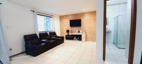 Recanto - Segurança e área de lazer próximo ao Aeroporto offers accommodations in Lauro de Freitas, 13 miles from Central Bus Station Salvador and 13 miles from Salvador Shopping Mall. This property offers access to a balcony, free private parking, and free Wifi. The accommodation features a 24-hour front desk and full-day security for guests. Providing a terrace and garden views, the spacious vacation home includes 3 bedrooms, 2 living rooms, flat-screen TV, an equipped kitchen, and 3 bathrooms with a shower. Guests can take in the views of the inner courtyard from the patio, which also has outdoor furniture. The vacation home offers bed linen, towels, and laundry service. For guests with children, the vacation home provides an indoor play area, a baby safety gate, and a children's playground. Guests can also relax in the garden, next to the outdoor swimming pool, or in the shared lounge area. Pelourinho is 16 miles from Recanto - Segurança e área de lazer próximo ao Aeroporto, while Arena Fonte Nova is 17 miles from the property. Salvador International Airport is 1.9 miles away, and the property offers a paid airport shuttle service.
