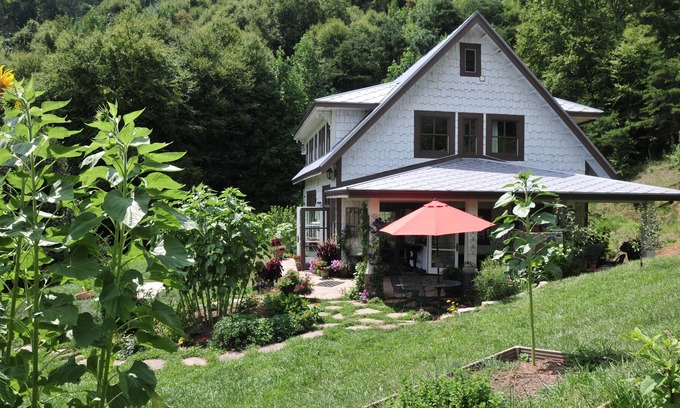 Offered for rent is a unique and architecturally sophisticated cottage on a magical mountain in Asheville, NC. The setting is retreat-like, and excellent for those wanting to reconnect with nature, themselves, their friends, or their family. This a place where you can get away from the many distractions of everyday life so you can find what feeds your soul.