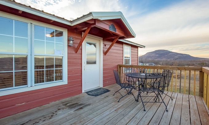 Red cabin with Panoramic Mountain View Cabin for 5 | Cabin in Medicine Park
