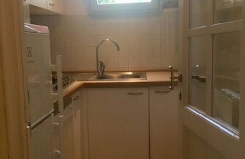 GROUND FLOOR: The entrance hall leads to the living room (includes a double sofa bed convertible into two singles; chimney; dining table). Central heating and a washing machine are hidden away in a closet. The kitchen is equipped with a dishwasher, a small oven (a microwave is also available in the living room), a four-burner stove, and a fridge and freezer. The bathroom is located beside the staircase and it is furnished with a shower.