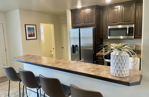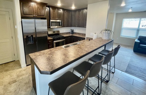 After a day on the trails, a well-furnished kitchen & grill make this feel like your home in Moab. Everyone can relax & stream their favorite shows & movies on three smart TVs. Gig internet has enough bandwidth to spare for video calls & the remote worker of the crew. There is a full-size washer & dryer in the home.