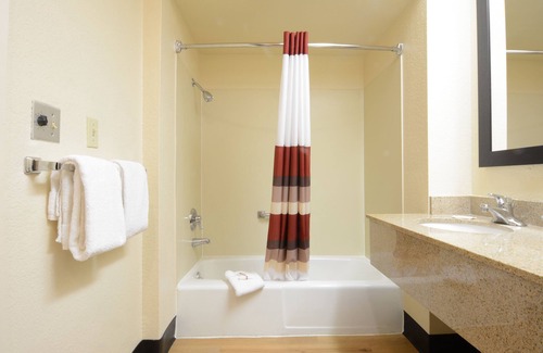 Red Roof Inn San Dimas - Fairplex offers 134 accommodations, which are accessible via exterior corridors and feature coffee/tea makers and irons/ironing boards. 32-inch flat-screen televisions come with premium cable channels and pay movies. Refrigerators and microwaves are provided. Bathrooms include shower/tub combinations and complimentary toiletries.