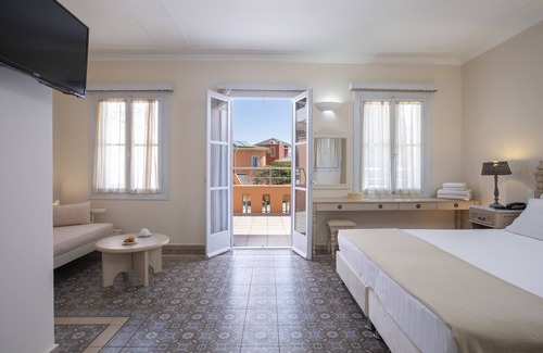 Red Tower Hotel Lefkada offers 50 air-conditioned accommodations, which are accessible via exterior corridors and feature minibars and safes. Rooms open to furnished balconies or patios. Each accommodation is individually furnished and decorated. Beds feature premium bedding. 32-inch flat-screen televisions come with satellite channels.