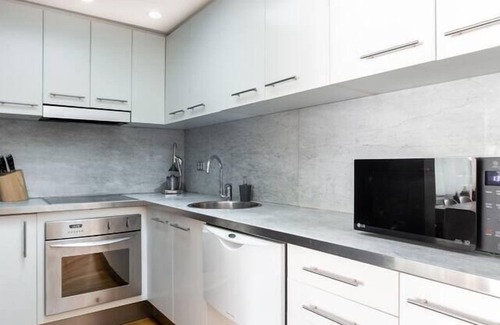 Set across three levels, the terrace boasts spacious living quarters with multiple balconies creating a seamless transition with the outdoors. The open plan living space has two large sofas and a flat-screen TV perfect for relaxing evenings at home. It flows to a sun-soaked balcony with outdoor dining for six guests and a state-of-the-art BBQ for cooking up a storm. The kitchen is fully-equipped for all your catering needs and includes a European induction cooktop, oven, microwave and dishwasher for easy clean-up. A large Balinese teak table indoors comes with replica Eames chairs and is perfect for sitting down to a shared meal or using as a dedicated workspace.