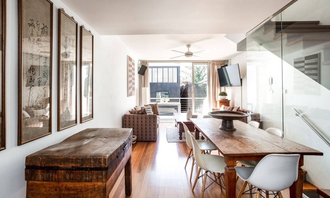 Nestled on a quiet residential street, this terrace is just footsteps to all that the suburb has to offer, including buzzing restaurants and cafes, cutting-edge galleries and the train station. It has been beautifully designed with a mix of Asian and Aboriginal artwork throughout.