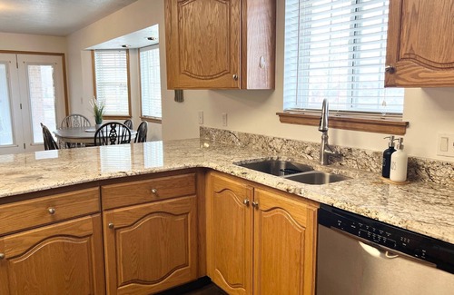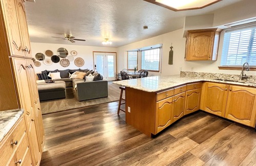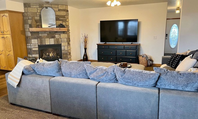 RedHawk Retreat is a charming 3-bedroom, 2-bath ranch-style home in Spanish Fork, Utah, offering a refreshing escape with open skies, mountain views, and the unique feel of a small hobby farm. Just minutes from I-15, parks, shops, and local events, it's also a great base for exploring Salt Lake City, ski resorts, and the scenic Nebo Loop.