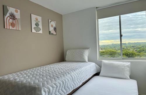 Refugio Central con Parqueo Privado offers accommodations in Armenia, 12 miles from National Coffee Park and 18 miles from Panaca. The property is around 27 miles from Pereira's Botanical Garden, 27 miles from Technological University of Pereira, and 27 miles from Pereira's Art Museum. The apartment also provides free Wifi, free private parking, and facilities for disabled guests. Providing a balcony and mountain views, the spacious apartment includes 2 bedrooms, a living room, satellite flat-screen TV, an equipped kitchen, and 2 bathrooms with a hot tub and a shower. Towels and bed linen are featured in the apartment. For added privacy, the accommodation has a private entrance and is protected by full-day security. Guests can also relax in the garden, next to the outdoor swimming pool, or on the sun terrace. Founders Monument is 27 miles from the apartment, while Cathedral of Our Lady of Poverty is 28 miles away. El Edén International Airport is 10 miles from the property.