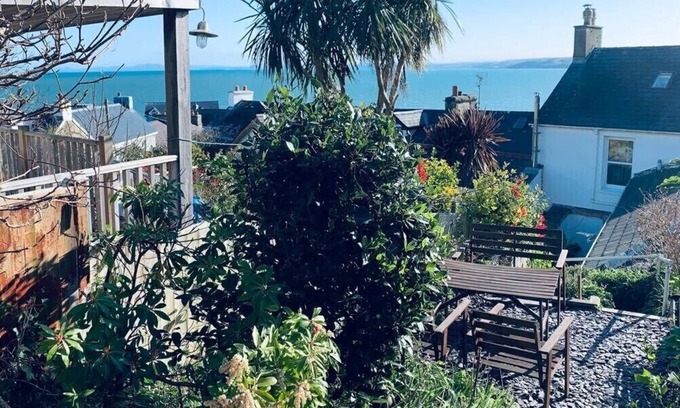 New Quay, newly refurbished traditional sea side cottage with sea views stone throw away from the beach in the heart of New Quay. Sleeps 8 comfortably, pet friendly, outside seating terrace and on street parking. Smaller parties and last minute booking please enquire for reduced rates. More information The space Spacious Georgian Grade 2 listed refurbished house. Brimming with original features and converted to a high standard with attention to detail. Comfortably sleeps 8 in 4 bedrooms. Located on High Terrace a 2 minute walk away from the restaurants and beach. Lovely quiet access only road with sea views. Outside area terraced at the back with a delightful garden with sea views across Cardigan Bay. Barbecue area outside the back door with further seating area in a private sun trap with festoon lighting for entertaining at night. Wonderful house for entertaining with vintage designer furniture with the emphasis on practical and fuss free living. The owner has 3 small children and a family friend with a dog so fully appreciates the rigours of family life. Guest access Exclusive use of the entire house Interaction with guests Welcomes all domestic pets but would like any dogs to remain on the ground floor only. Stair gates are provided.