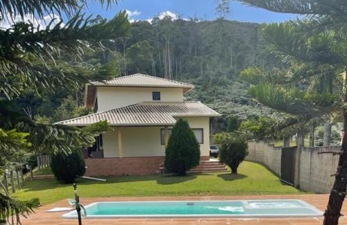 Featuring a garden, Região de Pedra Azul casa Amarela features accommodations in Domingos Martins. This property offers access to a balcony, free private parking, and free Wifi. The vacation home has an outdoor pool and a hot tub. The spacious vacation home is composed of 3 bedrooms, 3 living rooms with dining area, a fully equipped kitchen, and 4 bathrooms. Guests can take in the views of the mountain from the patio, which also has outdoor furniture. At the vacation home, there's a dressing room for guests to change in. Vitória Airport is 70 miles from the property.