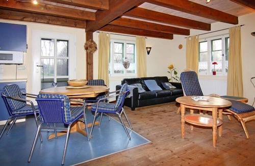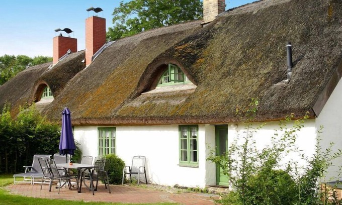 Thatched and lovingly furnished terraced houses with fireplace, WiFi and sauna in the northwest of the island of Rügen. You live in a 150-year-old and completely renovated fisherman's cottage, from whose dormer window you can see the sun rising over the Breetzer Bodden. On the 10,000 square meter garden property there is a barbecue house with three barbecue areas, a multi-purpose house with sauna, relaxation room and fitness equipment and at the end an idyllic children's playground.Vieregge, the small fishing village, is located in the most scenic part of the island of Rügen. You live quietly and close to nature on the Breetzer Bodden (approx. 400 m away), which fascinates every nature lover with its uniquely beautiful landscape between the Bodden and the sea. Here you will find peace, rare flora and fauna away from mass tourism. The morning calm is only interrupted by the swans on the bay. Wellness in the port village of Vieregge: The newly built wellness oasis in one of the thatched roof houses offers you a varied beauty and wellness program. Choose between an extensive range of massages, pampering cosmetic treatments or nurturing hand and foot treatments. The friendly staff responds individually to your needs. Highlights included: All consumption-based energy costs, bed linen and towels, WLAN, firewood, parking lot, activities nearby: Vieregge, a tranquil little fishing village, is located directly on the Breetzer Bodden in the north-west of the island of Rügen. It is part of a whole chain of Bodden waters in the Western Pomerania Lagoon Area National Park. Thousands of cranes rest here in autumn and offer a spectacular natural spectacle. The Bodden is an ideal area for all kinds of water sports and is also very popular with anglers. Only a few kilometers away from Vieregge is the Schaabe, a twelve-kilometer-long spit, which, with its fine sand, is considered one of the most beautiful bathing beaches on Rügen. Opposite Vieregge is the