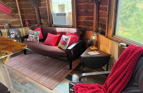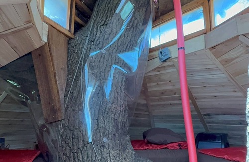 Escape to a beautiful treehouse that is sitting in the incredible tall trees. This treehouse gets in name from the large majestic oak tree that goes through the middle of the living room. Relax on the deck that seperates the main treehouse with the bathroom/shower treehouse and the main bedroom treehouse. Relaxing in the main bedrrom 16 ft above the ground in the trees with breath taking views. Lose yourself in nature and listen to all the beautiful sounds it has to offer. Or just sit on your private deck in the trees and enjoy a nice cool dip in the Cowboy pool or ease those tired muscles in the hot tub. Wake up to the most beautiful sunrises anywhere around. Enjoy fresh eggs from our chickens and ducks on the farm as well as bacon and fresh milk and orange juice. Then take a walk around the property to visit our hilarious goats and Simon our friendly donkey. Feed them treats and pet them too! Then take a canoe ride on our gorgeous pond and bring your fishing gear to catch and release fish! After that, take a stroll through our cute fairy forest and take a nap or read a book on our hammock in our garden. If you are even more adventurous, take some hikes through our trails and really experience all the beauty nature has to offer. We also have games to play and so much more!! Bring the kids or come for an anniversary or birthday celebration. Let us know what you are celebrating and we will do our best to make your stay even more special. We absolutely cannot wait to have you stay with us!