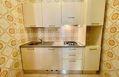 One-bedroom apartment on the ground floor with a private fenced garden. It can accommodate up to five guests, and the building offers a shared outdoor swimming pool, located only 360mt from the sea. The property is composed of a living area with a kitchenette, a dining table, a double sofa bed, a bedroom with a double bed plus a single bed, and a full bathroom with a shower box and a washing machine. It comes with one uncovered parking spot. A/C is available at an additional cost (check below).°Swimming pools are open seasonally (mid June/early September): exact dates may vary due to weather or maintenance.