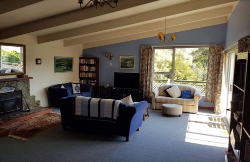 Our holiday home has been in the family for over 40 years . The lounge is particularly spacious and the section private, sheltered and a sunny location. It is an enjoyable place for the whole family to relax and enjoy with special extras like a children's fun bush walk and some friendly wekas within the property. By night a short stroll away are some glow worms that are well worth the look. For active holiday makers there are many bush walks to other bays in the area or mountain biking tracks to explore.