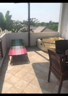 Food & DrinkTea/Coffee makerBathroomHairdryer, Toilet paper, Toilet, Spa tub, Towels, Bathtub or shower, Shared toilet, ShowerMedia & TechnologyTV, Flat-screen TVGeneralIron, Mosquito net, Fan, Ironing facilities, Private entrance, Air conditioning, Tile/Marble floor, Trash cansActivitiesHot tubOutdoorsOutdoor furniture, Balcony, Outdoor dining area, Terrace, Patio, Private pool, BarbecueKitchenMicrowave, Stovetop, Electric kettle, Refrigerator, Washing machine, Toaster, Cleaning products, Kitchen, Dining table, Wine glasses, KitchenwareLiving AreaSofa, Sitting area, Dining areaViewView, Garden view, Pool viewBedroomLinens, Wardrobe or closetAccessibilityUpper floors accessible by stairs onlyBuilding CharacteristicsSemi-detachedRoom AmenitiesAdapter, Drying rack for clothing, Non-feather pillow, Clothes rack, Socket near the bedEntertainment & Family ServicesBoard games/puzzlesPool and SpaPlunge Pool, Pool with a view, Heated pool, Pool towelsPhysical distancingSingle-room AC for guest accommodationCleanliness & disinfectionHand sanitizer |