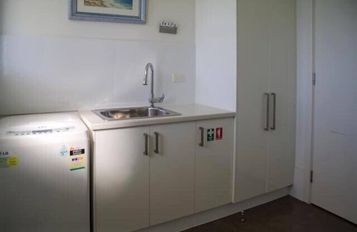 Living area with TV, DVD, sink, bar fridge, access to deck, outdoor furniture. Ducted reverse cycle air-conditioning.