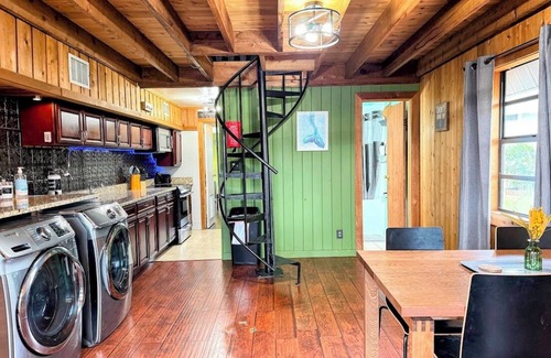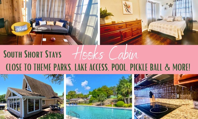 Hook’s Cabin is nestled within the peaceful gated community of Vacation Village it is a beautifully renovated A-Frame home and your perfect place to stay & play! You will enjoy private Lake Louisa access, the heated Olympic-sized community pool, tennis / basketball courts, play grounds, and FREE parking, fast WiFi, flat screen smart Tv's w/ cable, full kitchen, & in home laundry. All less than 25 mins from Disney & other Orlando theme parks, and 5 miles from the National Training Center.