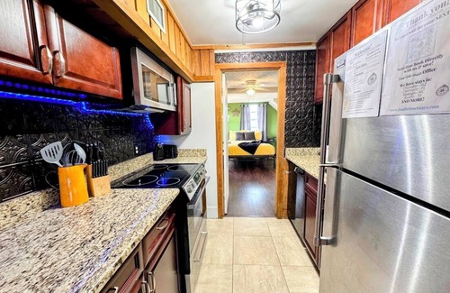 Nicely updated home with private primary bedroom / bath downstairs plus oversized upstairs loft. There are a total of 3 queens plus a sleeper Sofa to sleep up to 8 comfortably. Prep meals in the open kitchen, with stainless steel appliances, plenty of granite counter space, and cabinets stocked with cooking essentials. This home also has a free high efficiency washer & dryer, available for your use. We have done our best to include small touches, like kids books, games and smart Tv's to make your stay great! You will also want to enjoy the peaceful outdoor patio on beautiful days, staying in Clermont gives you the easy access to the most popular tourist attractions but quiet & safe feel of a gated community. People often say this is " A hidden gem": get away from it all yet be in the center of everything!