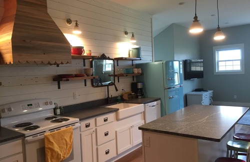 Come enjoy the beautiful country life at Selah Farm! You will wake up to amazing views, enjoy cooking in a farm kitchen, sleep in a cozy king size bed and can even take a luxurious bubble bath in a claw foot tub! We want you to feel pampered while you're staying at Selah Farm, so you will enjoy high quality bedding as well as spa-like towels and robes. The gorgeous kitchen is fully stocked with all new appliances and anything you'll need for your get-away. Your cooking experience will be top-notch with granite counter tops and an adorable aqua Big Chill refrigerator!