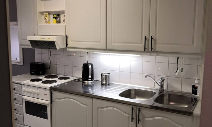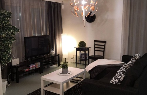 Terraced apartment 77m2, 2 bedrooms, living room, kitchen, bathroom, separate toilet and sauna. The bedrooms have double beds and sofa beds with beds, the living room has a corner sofa with a bed. Apartment is protected by Verisure full protection (leakage, fire, burglary and obstruction). NOTE! camera detectors operate ONLY if the alarm system is ON OR if a fire alarm linked to the system receives a smoke detector during a stay. The kitchen is a complete table setting for twelve. The whole apartment is for guests' use. Free parking in front of the apartment.