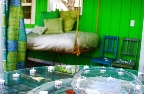 The Bitchin' Beach house is a very colorful, vibrant beach bungalow! It took a lot of work and heart to create this amazing environment. If you are looking for a unique experience, where your vacation home is not just a bed for the night, you have come to the right place! This house is truly a vacation in itself. Decorated and owned by professional Interior Designers/Decorators, this Caribbean-Inspired Getaway is unlike any other home. Filled with one-of-a-kind stained glass (including beautifully carved stained glass bedroom doors, dual masters - one we call the 'Captain's Room' featuring a queen bed, hanging chair hammock and a clawfoot bathtub perched on a pedestal and the other 'The Bamboo Room' has furniture taken straight from a villa in Mexico including a rocking chair and double bed handmade from bamboo.