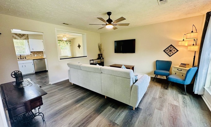 Updated and comfortable. Perfect location in a quiet neighborhood on a cul-de-sac street. 20 minutes to the airport, 25 minutes to Ft Stewart or HAAF, 30 minutes to Historic Savannah, 45 minutes to Tybee.