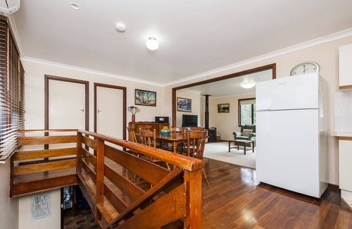 This lovely 2 story 3 x 2 sleeps up to 10 people and is walking distance to the beach. There are 3 good sized double bedrooms and a bunk room downstairs for the kids. The house has all the creature comforts of home, Air Con, Wood fire , Highchair, Nespresso Coffee Machine - please bring your own pods,TV/DVD. Even the family dog is welcome (there are no fences & Outside Only). Pet bond applicable $250.